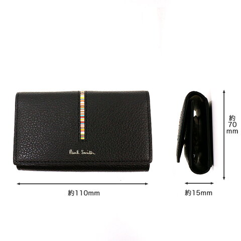 【サイズ】 横幅110mm×高さ70mm×マチ幅15mm 【仕様】 6連キーリング、ポケット×2 【素材】 牛革 【重さ】 70グラム 【カラー】 ブラック、ネイビー 【コメント】 ポールスミス、特徴的なカラーストライプがセンターにラインとして施されたシリーズです。