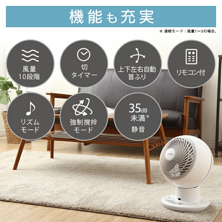 軽くて持ち運びしやすい、約1.9kg◆選べる送風モード連続:10段階から設定した風量で連続運転しますリズム:風量を3段階から設定。