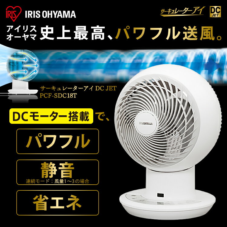 サーキュレーターアイ DC JET 18cm ホワイト PCF-SDC18T送料無料 サーキュレーター ボール型 左右首振り 扇風機 冷房 送風 静音 省エネ 首ふり 空気循環 部屋干し涼しい 風 暖房 循環 コンパクト リモコン アイリスオーヤマ