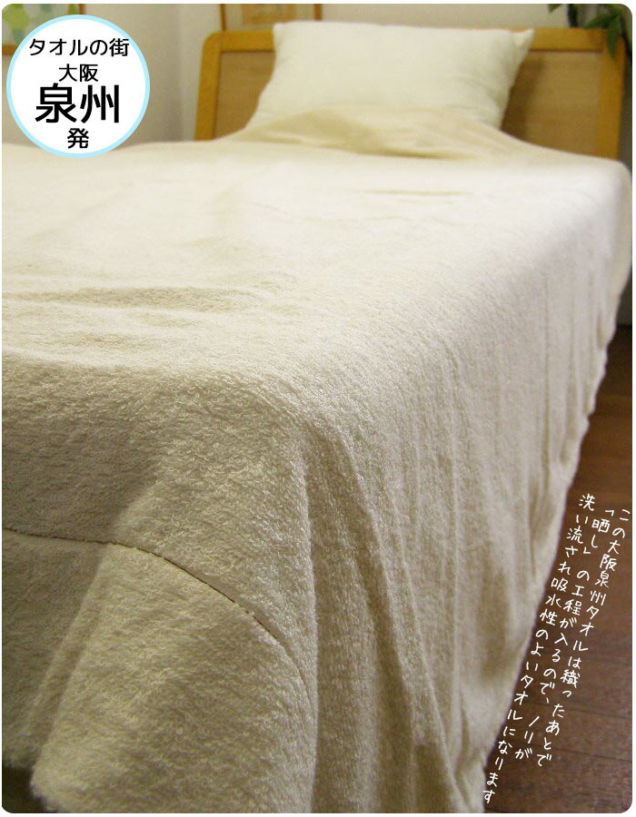 【生活・インテリア・家具・ベット・寝具ネット通信販売店】タオルの町大阪泉州産 安全・日本製本晒しタオルケット■シングルサイズ(150×200cm) この大阪泉州タオルは織ったあとで「晒し」の工程が入るので、ノリが洗い流され吸水性のよいタオルになります。